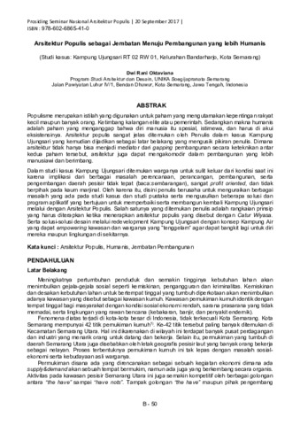 Oktaviana, Dwi Rani (2017) Arsitektur Populis sebagai Jembatan Menuju Pembangunan yang lebih Humanis (Studi kasus: Kampung Ujungsari RT 02 RW 01, Kelurahan Bandarharjo, Kota Semarang). In: Seminar Nasional Arsitektur Populis.
