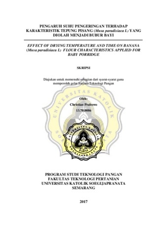 Prabowo, Christian (2017) PENGARUH SUHU PENGERINGAN TERHADAP KARAKTERISTIK TEPUNG PISANG (Musa paradisiaca L) YANG DIOLAH MENJADI BUBUR BAYI. Other thesis, Fakultas Teknologi Pertanian.
