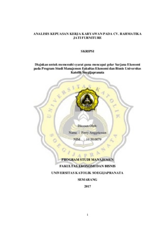 Anggriawan, Ferry (2017) ANALISIS KEPUASAN KERJA KARYAWAN PADA CV. RAHMATIKA JATI FURNITURE. Other thesis, Fakultas Ekonomi Dan Bisnis Universitas Katolik Soegijapranata.
