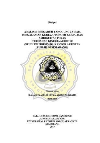 NUGRAHA, R.Y ADITYA HARI SETYA AGENG (2017) ANALISIS PENGARUH TANGGUNGJAWAB, PENGALAMAN KERJA,OTONOMI KERJA DAN AMBIGUITAS PERAN TERHADAP KINERJA AUDITOR (STUDI EMPIRIS PADA KANTOR AKUNTAN PUBLIK DI SEMARANG). Other thesis, Unika Soegijapranata Semarang.