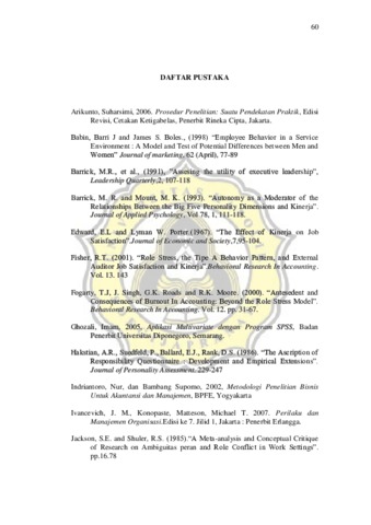 Penelitian ini menguji analisis pengaruh tanggungjawab, pengalaman kerja, otonomi kerja dan terhadap kinerja auditor