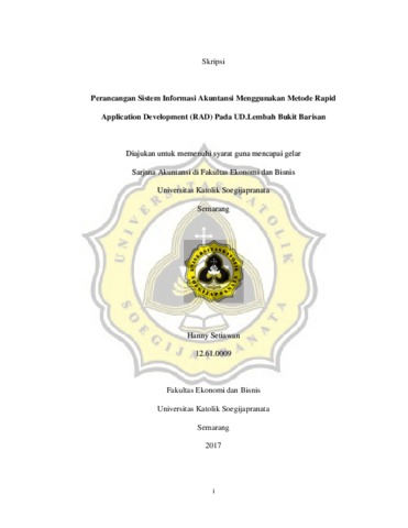 Setiawan, Hanny (2017) Perancangan Sistem Informasi Akuntansi Menggunakan Metode Rapid Application Development (RAD) Pada UD.Lembah Bukit Barisan. Other thesis, Fakultas Ekonomi Dan Bisnis Universitas Katolik Soegijapranata.
