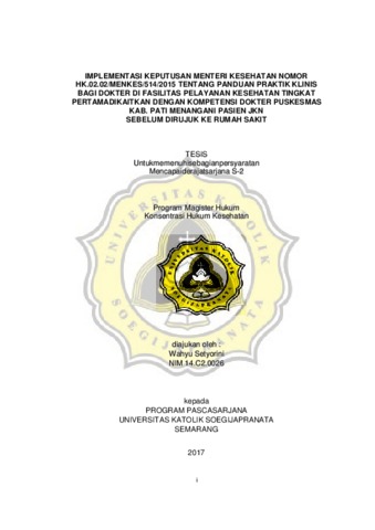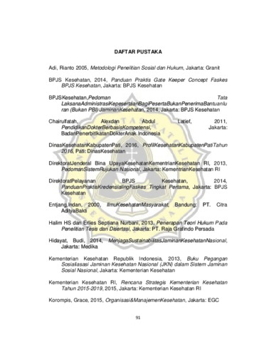 Setyorini, Wahyu (2017) IMPLEMENTASI KEPUTUSAN MENTERI KESEHATAN NOMOR HK.02.02/MENKES/514/2015 TENTANG PANDUAN PRAKTIK KLINIS BAGI DOKTER DI FASILITAS PELAYANAN KESEHATAN TINGKAT PERTAMADIKAITKAN DENGAN KOMPETENSI DOKTER PUSKESMAS KAB. PATI MENANGANI PASIEN JKN SEBELUM DIRUJUK KE RUMAH SAKIT. Masters thesis, Pasca Sarjana Universitas Katolik Soegijapranata.