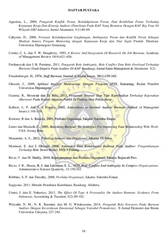 PRADANA, ADI RIZKY (2017) PENGARUH ROLE AMBIQUITY, ROLE CONFLICT, ROLE OVERLOAD DAN TIPE KEPRIBADIAN TERHADAP BURNOUT (STUDI EMPIRIS PADA AUDITOR DI KAP SEMARANG). Other thesis, Unika Soegijapranata Semarang.