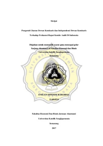 RAHARDJA, EVELYN EFFENDY (2017) PENGARUH UKURAN DEWAN KOMISARIS DAN INDEPENDENSI DEWAN KOMISARIS TERHADAP FREKUENSI RAPAT KOMITE AUDIT DI INDONESIA. Other thesis, Unika Soegijapranata Semarang.
