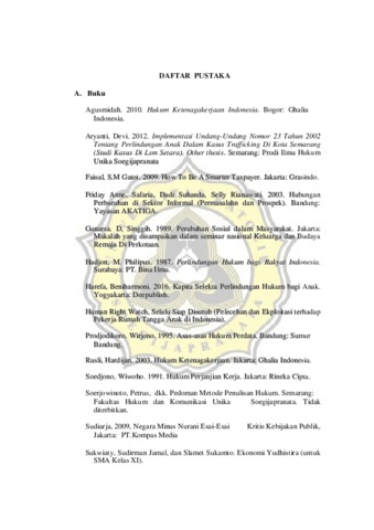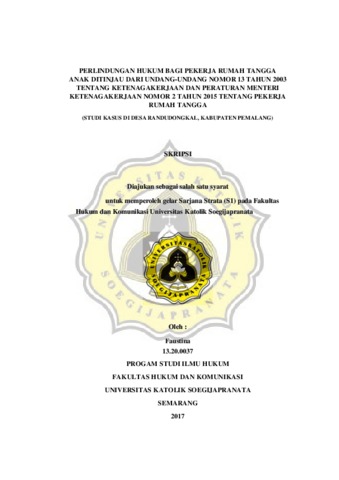 FAUSTINA, - (2017) PERLINDUNGAN HUKUM BAGI PEKERJA RUMAH TANGGA ANAK DITINJAU DARI UNDANG-UNDANG NOMOR 13 TAHUN 2003 TENTANG KETENAGAKERJAAN DAN PERATURAN MENTERI KETENAGAKERJAAN NOMOR 2 TAHUN 2015 TENTANG PEKERJA RUMAH TANGGA (STUDI KASUS DI DESA RANDUDONGKAL, KABUPATEN PEMALANG. Other thesis, Unika Soegijapranata Semarang.