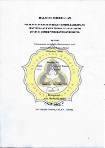 PRAKOSO, NOVERIO ADY (2017) PELAKSANAAAN BANTUAN HUKUM TIMBAL BALIK DALAM PENYELESAIAN KASUS TINDAK PIDANA KORUPSI (STUDI DI KOMISI PEMBERANTASAN KORUPSI). Other thesis, Unika Soegijapranata Semarang.