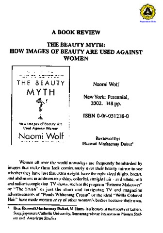 Dukut, Ekawati Marhaenny (2005) The Beauty Myth : How Images of Beauty are Used Against Women. THE BEAUTY MYTH: HOW IMAGES OF BEAUTY ARE USED AGAINST WOMEN, 5 (2). pp. 165-170. ISSN 2502-4914