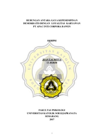 LAURITTA, JEAN (2017) HUBUNGAN ANTARA GAYA KEPEMIMPINAN DEMOKRATIS DENGAN LOYALITAS KARYAWAN PT APAC INTI CORPORA BAWEN. Other thesis, Unika Soegijapranata Semarang.