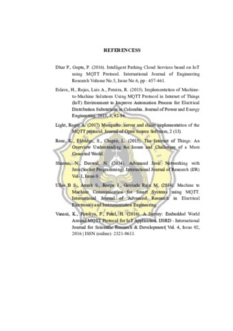 ABSTRACT Internet of Things (IoT) is a concept for transmitted data using devices over a network without human interference. Internet of Things (IoT) requires a platform and server as a provider of data reception. Message Queuing Telemetry Transport (MQTT) is a well known Internet of Things (IoT) protocol in data transmission efficiency because it can transmit very small data, making it suitable for use on devices with restricted resource. Due to the very complex MQTT features, protocols are required by simply utilizing the publish features of MQTT. This protocol is expected to be better than MQTT. The custom protocols used on this Internet of Things (IoT) platform only use the publication feature. The protocol only handles data reception from the device and is forwarded to the database server. The protocol receives data sent by the device in a predefined format. Then the data is separated by a space and forwarded to the database server. Access key is required for data transmitted from the device not to exchanged with other channels. One account can have multiple channels and one channel can have multiple sensors. The data transmission format the server receives is [ACCESS_KEY] [SPACE] [SENSOR_ID] [SPACE] [VALUE]. This project builds an Internet of Things (IoT) platform called My IoT Platform is using a custom protocol. Provided front-end applications to facilitate users to access it The tests performed on this project are the server endurance test and the size of the data packets sent. Keywords: iot, internet of things, server iot, mqtt, arduino