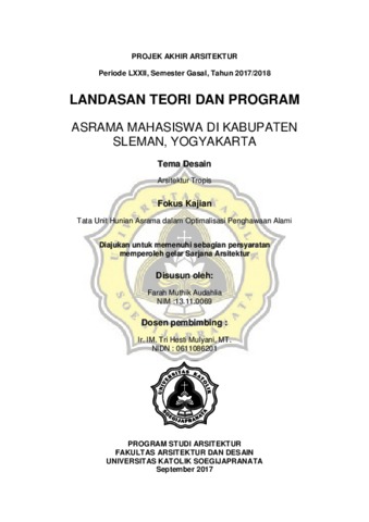 Audahlia, Farah Muthik (2018) ASRAMA MAHASISWA DI KABUPATEN SLEMAN, YOGYAKARTA. Other thesis, Unika Soegijapranata Semarang.