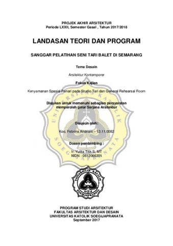 Andriani, Koo, Febrina (2018) SANGGAR PELATIHAN SENI TARI BALET DI SEMARANG. Other thesis, Unika Soegijapranata Semarang.