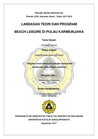 Dwiantara, Faishal Hafizh (2018) BEACH LEISURE DI PULAU KARIMUNJAWA. Other thesis, Unika Soegijapranata Semarang.