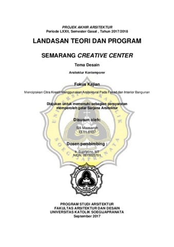 Maesaroh, Siti (2018) SEMARANG CREATIVE CENTER. Other thesis, Unika Soegijapranata Semarang.