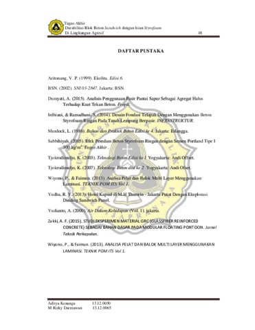 Darmawan, M Rizky (2018) DURABILITAS BLOK BETON SANDWICH DENGAN ISIAN STYROFOAM DI LINGKUNGAN AGRESIF. Other thesis, Unika Soegijapranata Semarang.