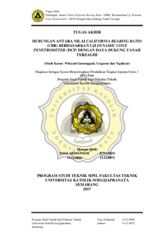 JUNARSO, JUNARSO (2018) HUBUNGAN ANTARA NILAI CALIFORNIA BEARING RATIO (CBR) BERDASARKAN UJI DYNAMIC CONE PENETROMETER (DCP) DENGAN DAYA DUKUNG TANAH TERZAGHI. Other thesis, Unika Soegijapranata Semarang.