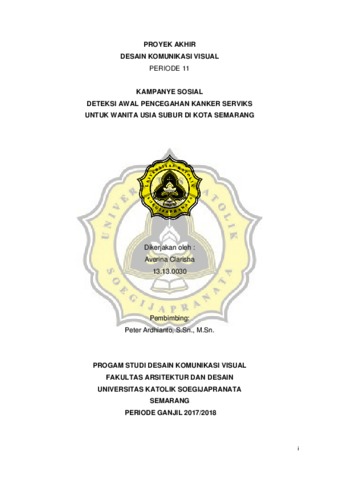 Clarisha, Averina (2018) KAMPANYE SOSIAL DETEKSI AWAL PENCEGAHAN KANKER SERVIKS UNTUK WANITA USIA SUBUR DI KOTA SEMARANG. Other thesis, Unika Soegijapranata Semarang.