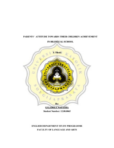 NATASHA, GO,ADELA (2017) PARENTS’ ATTITUDE TOWARDS THEIR CHILDREN ACHIEVEMENT IN BILINGUAL SCHOOL. Other thesis, Unika Soegijapranata Semarang.