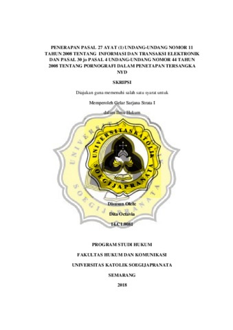 Octavia, Dita (2018) PENERAPAN PASAL 27 AYAT (1) UNDANG-UNDANG NOMOR 11 TAHUN 2008 TENTANG INFORMASI DAN TRANSAKSI ELEKTRONIK DAN PASAL 30 jo PASAL 4 UNDANG-UNDANG NOMOR 44 TAHUN 2008 TENTANG PORNOGRAFI DALAM PENETAPAN TERSANGKA. Other thesis, Unika Soegijapranata Semarang.