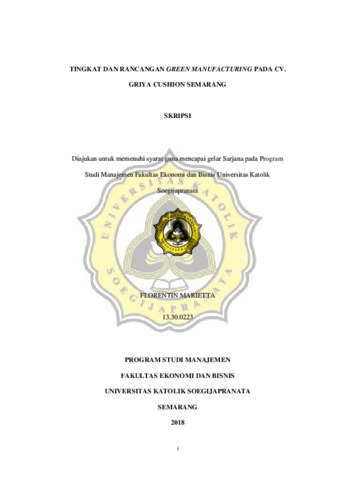 MARIETTA, FLORENTIN (2018) TINGKAT DAN RANCANGAN GREEN MANUFACTURING PADA CV. GRIYA CUSHION SEMARANG. Other thesis, Unika Soegijapranata Semarang.