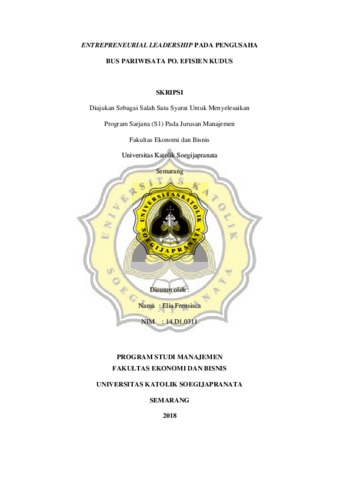 Frensisca, Elia (2018) ENTREPRENEURIAL LEADERSHIP PADA PENGUSAHA BUS PARIWISATA PO. EFISIEN KUDUS. Other thesis, Unika Soegijapranata Semarang.