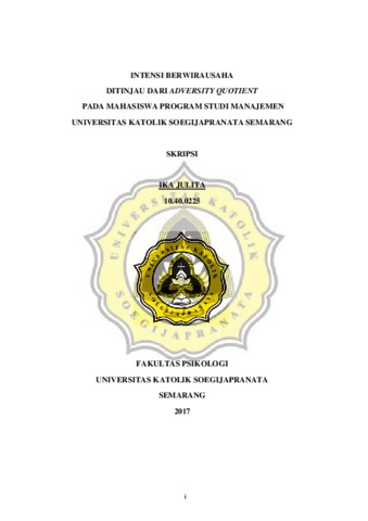 JULITA, IKA (2018) INTENSI BERWIRAUSAHA DITINJAU DARI ADVERSITY QUOTIENT PADA MAHASISWA PROGRAM STUDI MANAJEMEN UNIVERSITAS KATOLIK SOEGIJAPRANATA SEMARANG. Other thesis, Unika Soegijapranata Semarang.