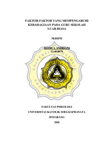 ANDRIANI, MONICA (2018) FAKTOR-FAKTOR YANG MEMPENGARUHI KEBAHAGIAAN PADA GURU SEKOLAH LUAR BIASA. Other thesis, Unika Soegijapranata Semarang.