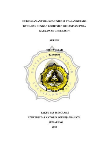 YUNIAR, TITO (2018) HUBUNGAN ANTARA KOMUNIKASI ATASAN KEPADA BAWAHAN DENGAN KOMITMEN ORGANISASI PADA KARYAWAN GENERASI Y. Other thesis, Unika Soegijapranata Semarang.