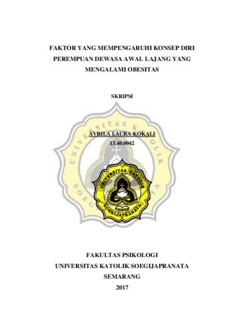 KOKALI, AVRILA LAURA (2018) FAKTOR YANG MEMPENGARUHI KONSEP DIRI PEREMPUAN DEWASA AWAL LAJANG YANG MENGALAMI OBESITAS. Other thesis, Unika Soegijapranata Semarang.