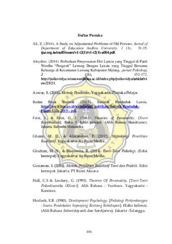 WIDYATIANA, HANA AZARIA (2018) PENYESUAIAN DIRI PADA LANJUT USIA YANG TINGGAL DI PANTI WERDHA. Other thesis, Unika Soegijapranata Semarang.