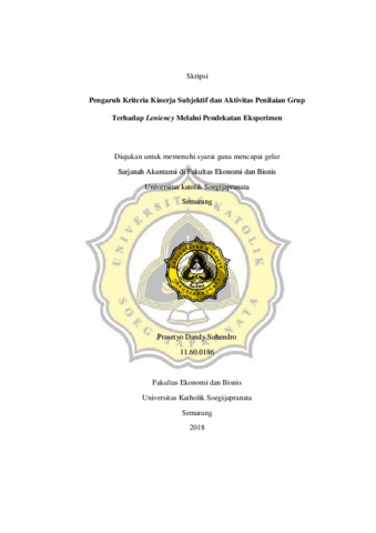 Suhendro, Prasetyo Dandy (2018) Pengaruh Kriteria Kinerja Subjektif dan Aktivitas Penilaian Grup Terhadap Leniency Melalui Pendekatan Eksperimen. Other thesis, Unika Soegijapranata Semarang.