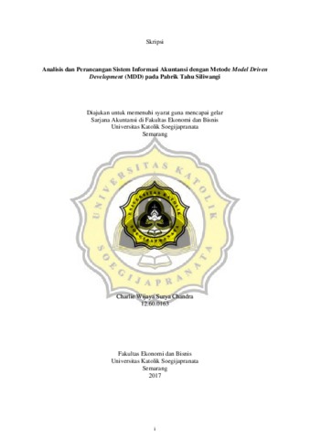 Chandra, Charlie Wijaya Surya (2018) Analisis dan Perancangan Sistem Informasi Akuntansi dengan Metode Model Driven Development (MDD) pada Pabrik Tahu Siliwangi. Other thesis, Unika Soegijapranata Semarang.
