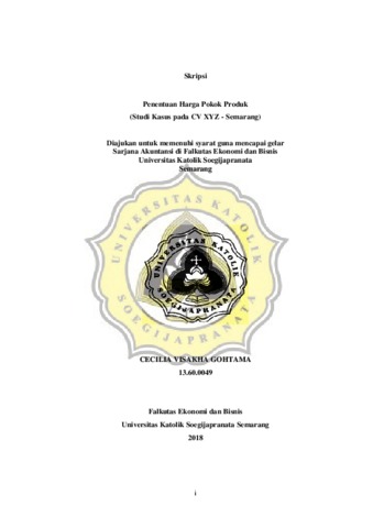 GOHTAMA, CECILIA VISAKHA (2018) Penentuan Harga Pokok Produk. Other thesis, Unika Soegijapranata Semarang.