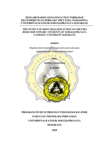 VALENTINA, VIONNA (2018) PENGARUH BODY DISSATISFACTION TERHADAP KECENDERUNGAN PERILAKU DIET PADA MAHASISWA UNIVERSITAS KATOLIK SOEGIJAPRANATA SEMARANG. Other thesis, Unika Soegijapranata Semarang.