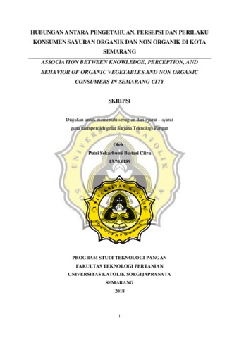 Citra, Putri Sekarbumi Bestari (2018) HUBUNGAN ANTARA PENGETAHUAN, PERSEPSI DAN PERILAKU KONSUMEN SAYURAN ORGANIK DAN NON ORGANIK DI KOTA SEMARANG. Other thesis, Unika Soegijapranata Semarang.