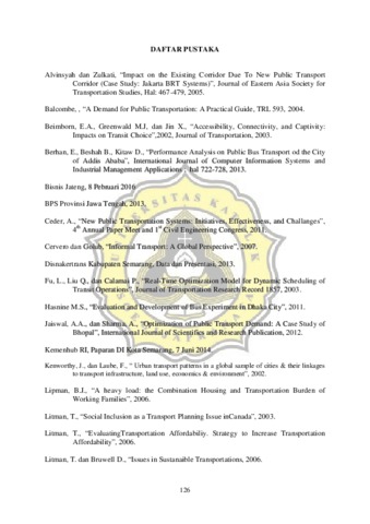 TARIGAN, THERESIA (2018) PELAYANAN TRANSPORTASI PUBLIK PEKERJA DI KORIDOR ANTAR KOTA UNGARAN-BAWEN. Other thesis, Unika Soegijapranata Semarang.