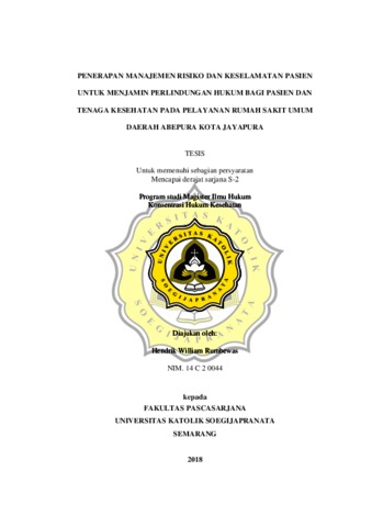 Rumbewas, Hendrik William (2018) PENERAPAN MANAJEMEN RISIKO DAN KESELAMATAN PASIEN UNTUK MENJAMIN PERLINDUNGAN HUKUM BAGI PASIEN DAN TENAGA KESEHATAN PADA PELAYANAN RUMAH SAKIT UMUM DAERAH ABEPURA KOTA JAYAPURA. Other thesis, Unika Soegijapranata Semarang.