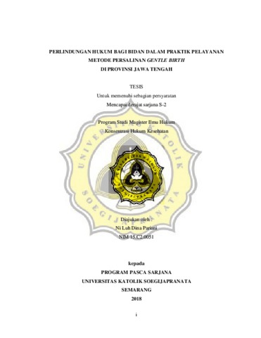 Pariani, Ni Luh Dina (2018) PERLINDUNGAN HUKUM BAGI BIDAN DALAM PRAKTIK PELAYANAN METODE PERSALINAN GENTLE BIRTH DI PROVINSI JAWA TENGAH. Other thesis, Unika Soegijapranata Semarang.