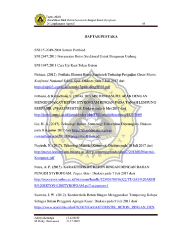 Kenanga, Aditya (2018) DURABILITAS BLOK BETON SANDWICH DENGAN ISIAN STYROFOAM DI LINGKUNGAN AGRESIF. Other thesis, Unika Soegijapranata Semarang.
