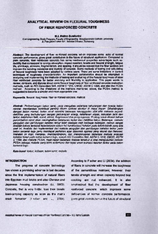 Susilorini, Retno (2006) ANALYTICAL REVIEW ON FLEXURAL TOUGHNESS OF FIBER REINFORCED CONCRETE. Jurnal Teknik Sipil dan Perencanaan, 1 (8).