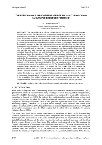 Susilorini, Retno (2007) THE PERFORMANCE IMPROVEMENT of FIBER PULL-OUT of NYLON 600 by CLUMPED EMBEDDED FIBER END. In: The 1 st International Conference of European Asian Civil Engineering Forum. EACEF.