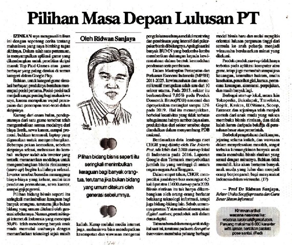 Sanjaya, Ridwan (2017) Pilihan Masa Depan Lulusan PT. Suara Merdeka.
