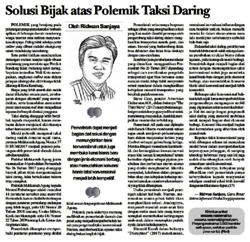 Sanjaya, Ridwan (2017) Solusi Bijak atas Polemik Taksi Daring. Suara Merdeka.