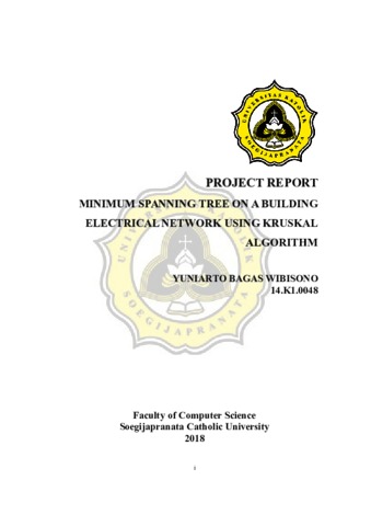 WIBISONO, YUNIARTO BAGAS (2018) PROJECT REPORT MINIMUM SPANNING TREE ON A BUILDING ELECTRICAL NETWORK USING KRUSKAL ALGORITHM. Other thesis, Unika Soegijapranata Semarang.
