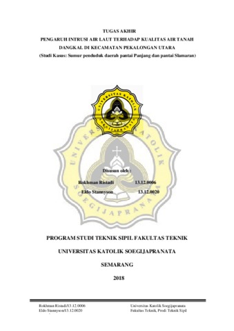RISTADI, ROKHMAN (2018) PENGARUH INTRUSI AIR LAUT TERHADAP KUALITAS AIR TANAH DANGKAL DI KECAMATAN PEKALONGAN UTARA (Studi Kasus: Sumur penduduk daerah pantai Panjang dan pantai Slamaran). Other thesis, Unika Soegijapranata Semarang.