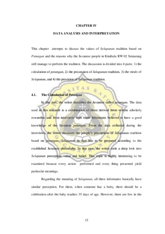 Tradition is a custom run by society and passed down to the next generation. In the process, a generation might engage in reconstructing the existing tradition. A tradition is not only maintaned but also interpreted. This research deals with the procession of Selapanan tradition practiced in Java. The calculation of the 35 days after a baby‟s birth is called Selapanan. Using a folk culture perspective, this research has two goals. The first goal is to identify the background of Selapanan tradition based on the Javanese petungan.. The second goal is to find out how Javanese people in Kinibalu, RW 02, Semarang has carried out the procession of the Selapanan ceremony. By using snowball and purposive sampling to obtain some key informants, the result of the interview shows that selapanan exist because people still believe that a baby must be given the appropriate neptu for its selapanan ceremony, in order that there will be mercy and a favorable healthy life from God for the baby‟s future life. This research also finds that there is a traditional procession that needs to be met for the success of the selapanan ceremony, i.e. the shaving of the baby‟s hair, the trimming off of the baby‟s nails, the variety of the meals prepared, and the provision of the selapanan radition. Keywords: selapanan, petungan, Java, folk culture, Kinibalu, Semarang