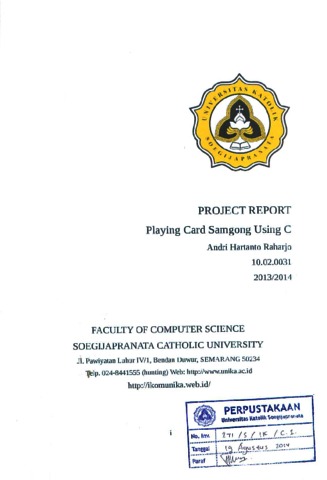 Raharjo, Andri Hananto (2013) Playing Card Samgong Using C. Other thesis, Unika Soegijapranata Semarang.