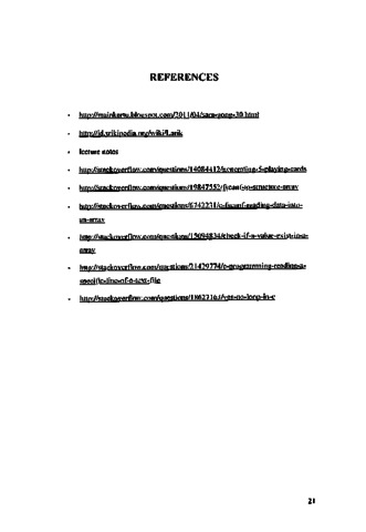 This game is very simple and easy to understand. The game is played using playing cards and is usually played by two players or more players with the aim to collect a maximum of 30 and a card value should not be more than that to be a winner if the value of the card value is more than 30 players, the player declared lost The project was created with the C programming language, using an array data structure.