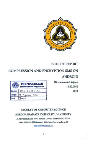 Wijaya, Ricmawan Adi (2014) COMPRESSION AND ENCRYPTION SMS ON ANDROID. Other thesis, Unika Soegijapranata Semarang.