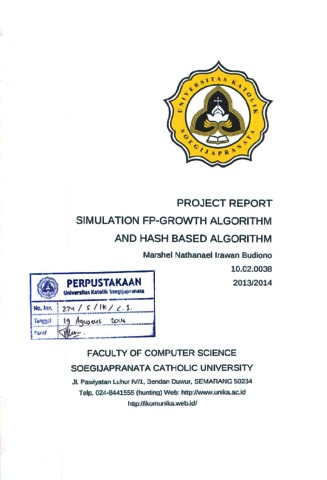 Budiono, Marshel Nathanael Irawan (2013) SIMULATION FP-GROWTH ALGORITHM AND HASH BASED ALGORITHM. Other thesis, Unika Soegijapranata Semarang.